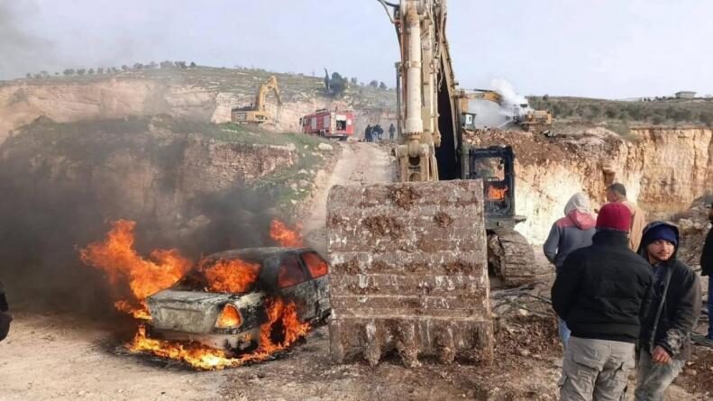 إصابتان وإحراق آليات ومركبات في اعتداء المستعمرين على عوريف جنوب نابلس
