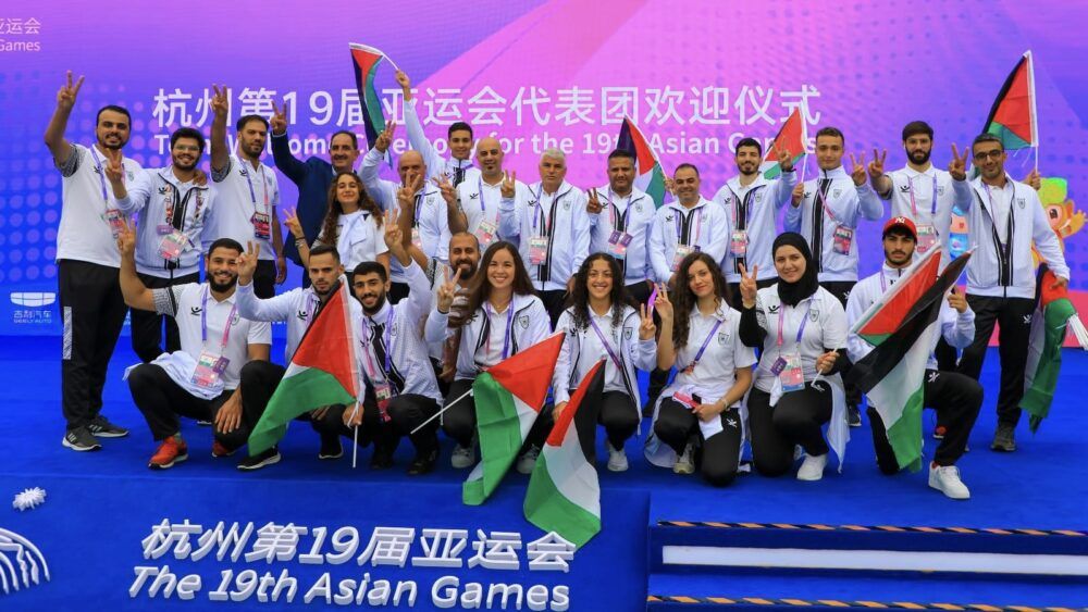 رفع علم فلسطين في قرية الرياضيين بدورة الألعاب الآسيوية