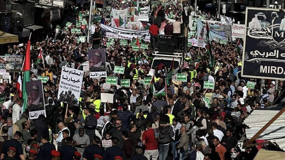 آلاف الأردنيين يشاركون بوقفات ومسيرات دعماً لفلسطين