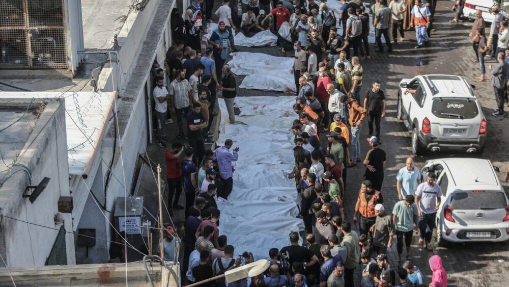 دفن عشرات جثامين الشهداء بمقبرة جماعية في مدينة غزة