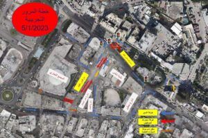 وستبدأ الخطة المرورية الجديدة من صباح يوم الأحد الموافق 5/2/2023 حسب الخارطة الموضحة ادناه.