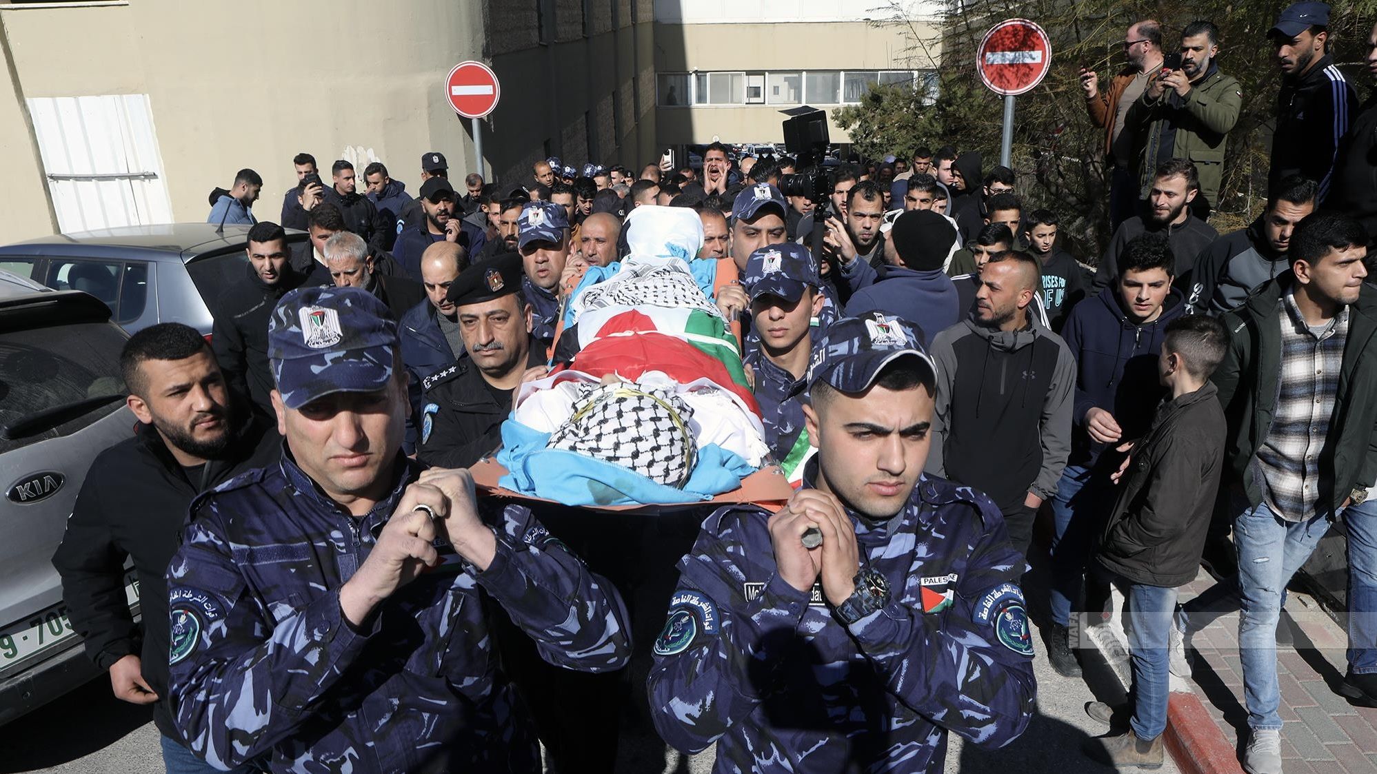 شيعت جماهير غفيرة من أبناء شعبنا في مخيم العروب، شمال الخليل، اليوم الجمعة، جثمان الشهيد الملازم في جهاز الشرطة محمد إسماعيل جوابرة (22 عاما)، في مراسم عسكرية مهيبة.