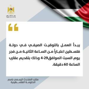 فلسطين: البدء بالتوقيت الصيفي من فجر يوم السبت