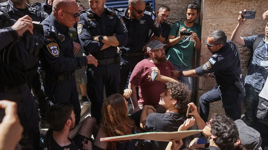 كقمعت قوات الاحتلال الإسرائيلي، اليوم الجمعة، وقفة إسناد مع عائلة صب لبن في البلدة القديمة من مدينة القدس المحتلة، ضد تهجيرها قسريا من بيتها.