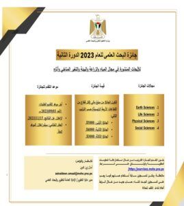 وأشارت إلى أن الجائزة تشمل مجالات المياه، والزراعة، والبيئة، والتغير المناخي وآثاره، وهي تستهدف الباحثين والأكاديميين العاملين في مؤسسات التعليم العالي الفلسطينية المعتمدة لدى الوزارة، والباحثين العاملين في الوزارات والمراكز البحثية التابعة لها، والباحثين العاملين في مراكز البحث العلمي المعتمدة لدى وزارة “التعليم العالي”، والباحثين في القطاع الخاص والأهلي، والباحثين الأفراد.