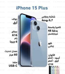 ويعمل هاتفا “أيفون 15″ و”أيفون 15 بلس” بمعالج A16، وهو المعالج نفسه الموجود في إصدارات “أيفون 14 برو” السابقة.