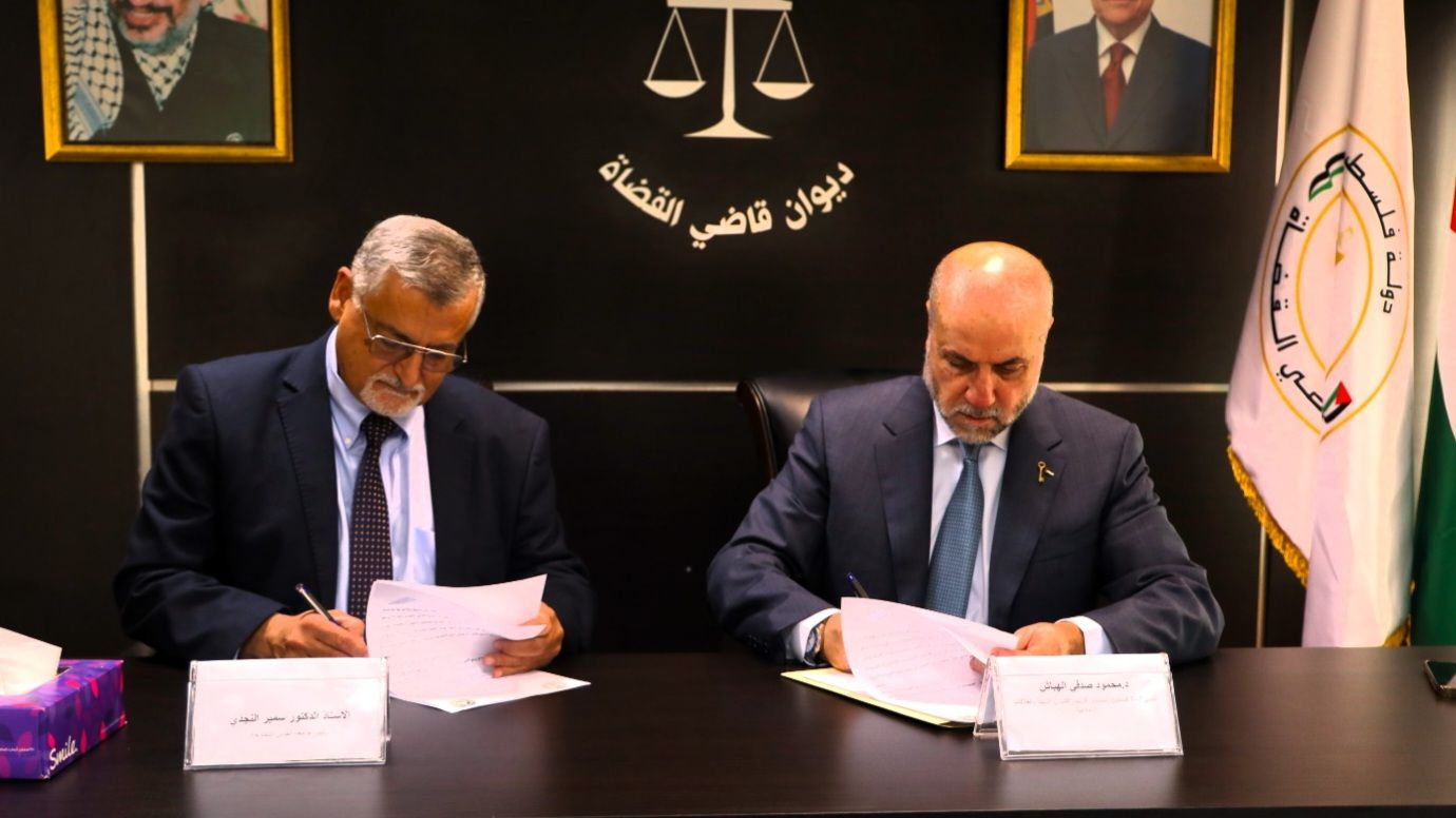 وأشار النجدي إلى “أهمية هذه المذكرة التي تندرج ضمن دور جامعة القدس المفتوحة التكاملي مع ديوان قاضي القضاة والمحاكم الشرعية لتقديم فائدة كبيرة لشريحة واسعة في المجتمع الفلسطيني، إيماناً بالدور المتخصص لديوان قاضي القضاة، حيث تسعى الجامعة إلى تطوير وصقل مهارات وأداء كوادر ديوان قاضي القضاة وتمكنهم من الكفايات التطبيقية والمعرفية، بما يخدم الاستقرار الأسري والاجتماعي، والفصل في المنازعات المتعلقة بالمسائل الشرعية والأحوال الشخصية وفقاً للشريعة والقانون”.