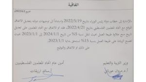 وتضمن التعديل نقل العلاوة وقدرها 5% التي كانت مقرة من تاريخ 1-1-2024 إلى 1-1-2023، لتضاف على الـ 10% التي كانت مقررة أصلا في الاتفاق السابق.