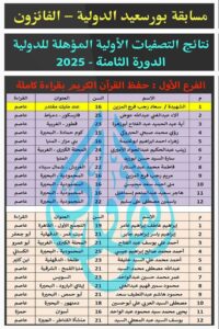 وتضمنت قائمة الفائزين 22 متسابقا ومتسابقة في مختلف الفروع، فيما من المقرر إجراء التصفيات النهائية للمؤهلين للمسابقة الدولية يوم 18 ديسمبر/كانون الأول.