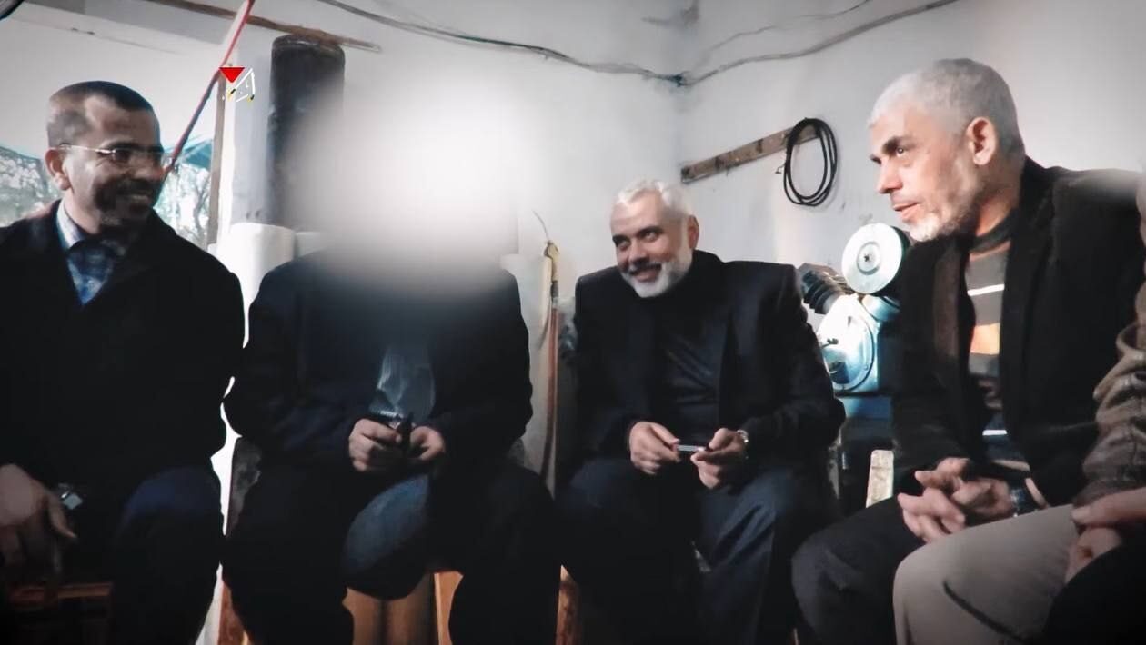 بثت كتائب الشهيد عز الدين القسام، الجناح العسكري لحركة حماس، اليوم ، فيديو جديد يجمع -لأول مرة- قادة حماس الشهداء إسماعيل هنية وصالح العاروري ويحيى السنوار.