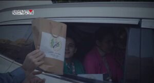 ووثقت مشاهد مصورة، لحظة انتشار كتائب القسام وتسليم الأسيرات الثلاث للصليب الأحمر، حيث كانت بانتظارهم طائرات مروحية للاحتلال غلاف غزة.