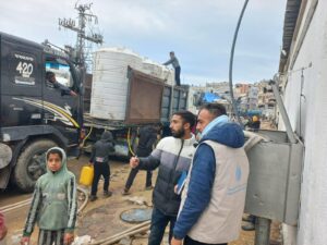 أكدت سلطة المياه توسعة أعمال نقل المياه بالصهاريج وتوزيعها على جميع المناطق المنكوبة في غزة وشمال غزة، ضمن خطة الاستجابة الطارئة لتحسين وتسهيل وصول السكان والنازحين إلى المياه مع تأمين احتياجاتهم في الحد الأدنى.