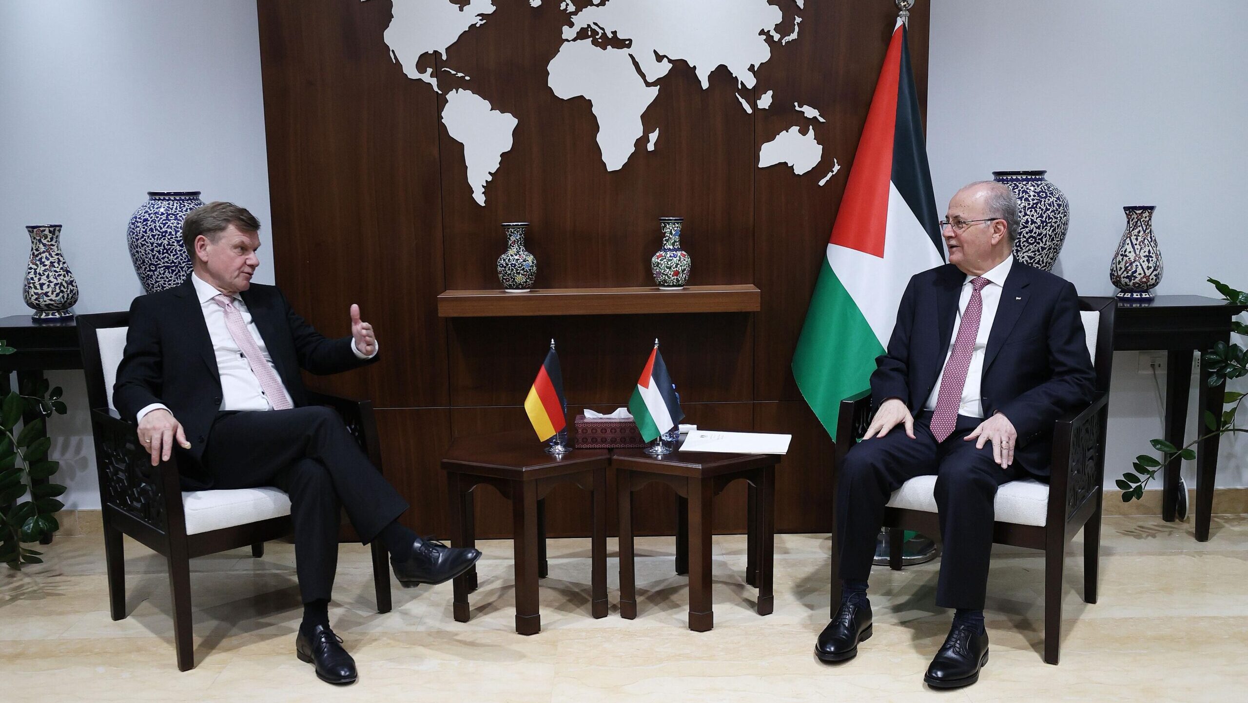 وثمن مصطفى دعم ألمانيا المستمر لفلسطين بشكل مباشر أو عبر الاتحاد الأوروبي، في العديد من القطاعات الحيوية، بالإضافة إلى المساعدات الإغاثية والإنسانية التي قدمتها لأبناء شعبنا في قطاع غزة ودعواتها المستمرة لوقف إطلاق النار.