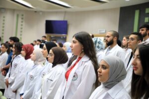 من جانبها، قالت الطالبة في كلية الطب فاتن حماد، “نحن على يقين أن كليتنا تعمل جاهدة بكل طاقتها لتقدم لنا الأفضل، متحدية كل الصعاب وطامحة للقمة، ونحن طلبة الطب نؤمن بأن الكلية تقدم نهجا جديدا متكاملا بقدرات وفكر ومعارف علمية، وتهيئ أفضل وسائل العلم وتنتقي مناهج وطرق تعليم الأحدث، فتجتاز حدود الزمكانية لتثبت حضورها ومواكبتها لأحدث التطورات”.