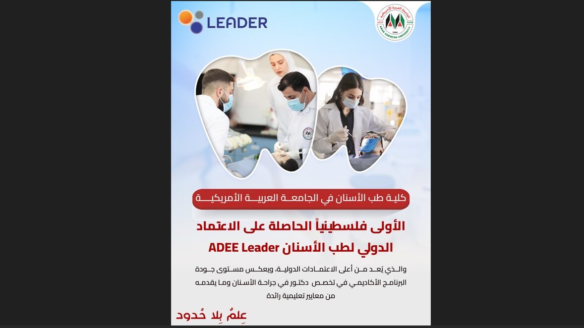 من جهته، قال عميد كلية طب الأسنان الدكتور محمد جرادات “نحن في الكلية نفخر بما تحقق من إنجازات أكاديمية وبحثية ومجتمعية، وبما وصلنا إليه من تميز على المستويين المحلي والدولي، وحصولنا على اعتماد ADEE Leader الدولي يمثل تتويجا لجهود متواصلة في سبيل تقديم تعليم طبي بمعايير عالمية”.