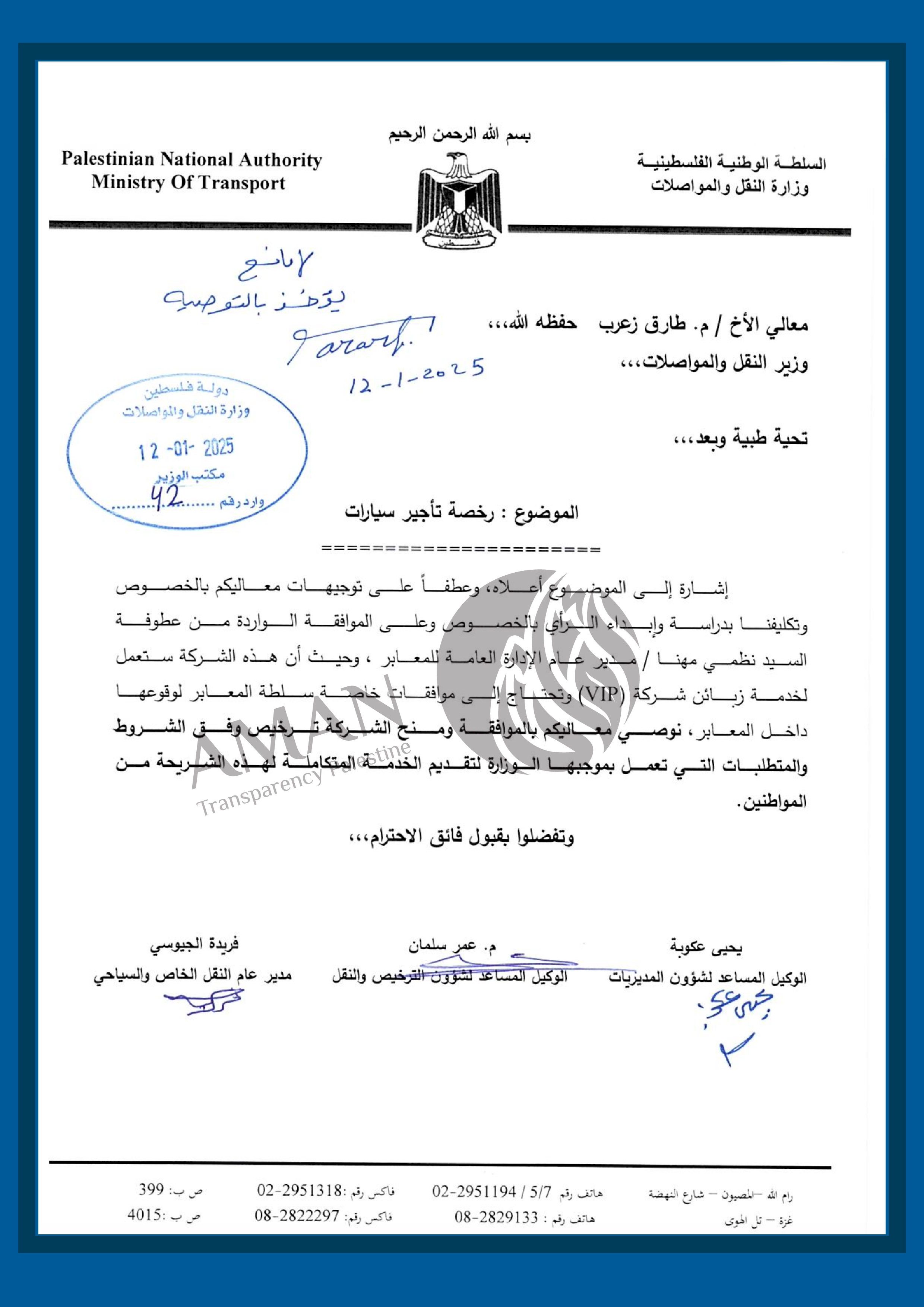 في عام 2023، لم يعد الأمر مجرد اشتباه. صدر القرار رقم (1) الذي ينظم عمل “النقل المميز VIP” في فلسطين.