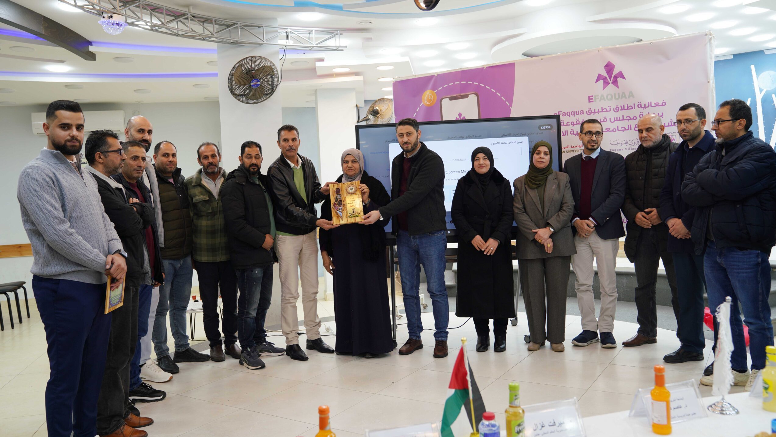 الطلبة يزيد أبو سلامة، فايزة ولد علي، ورغد زكارنة، ابتكروا مشروعا رياديا أطلقوا عليه اسم “E-FAQQUA”، ليكون نموذجا عمليا في تحويل الأفكار الجامعية وتتجاوز حدود القاعات الدراسية لتكون أثرا ملموسا في المجتمع المحلي.