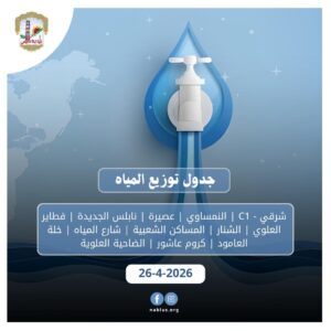 جدول توزيع المياه على مدينة نابلس لليوم الأحد 26-4-2026
